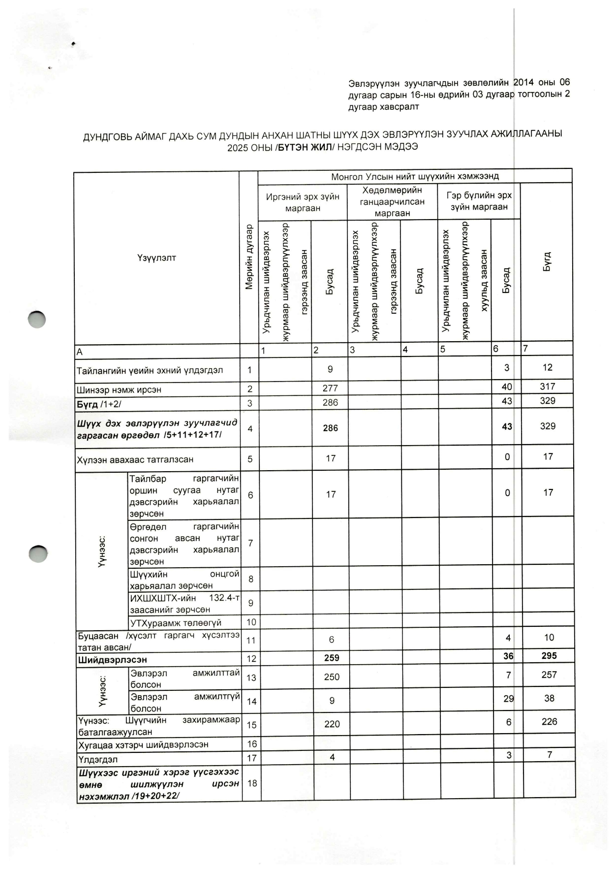 2025 ОНЫ ШИЛДЭГ АЖЛААР ШАЛГАРЛАА